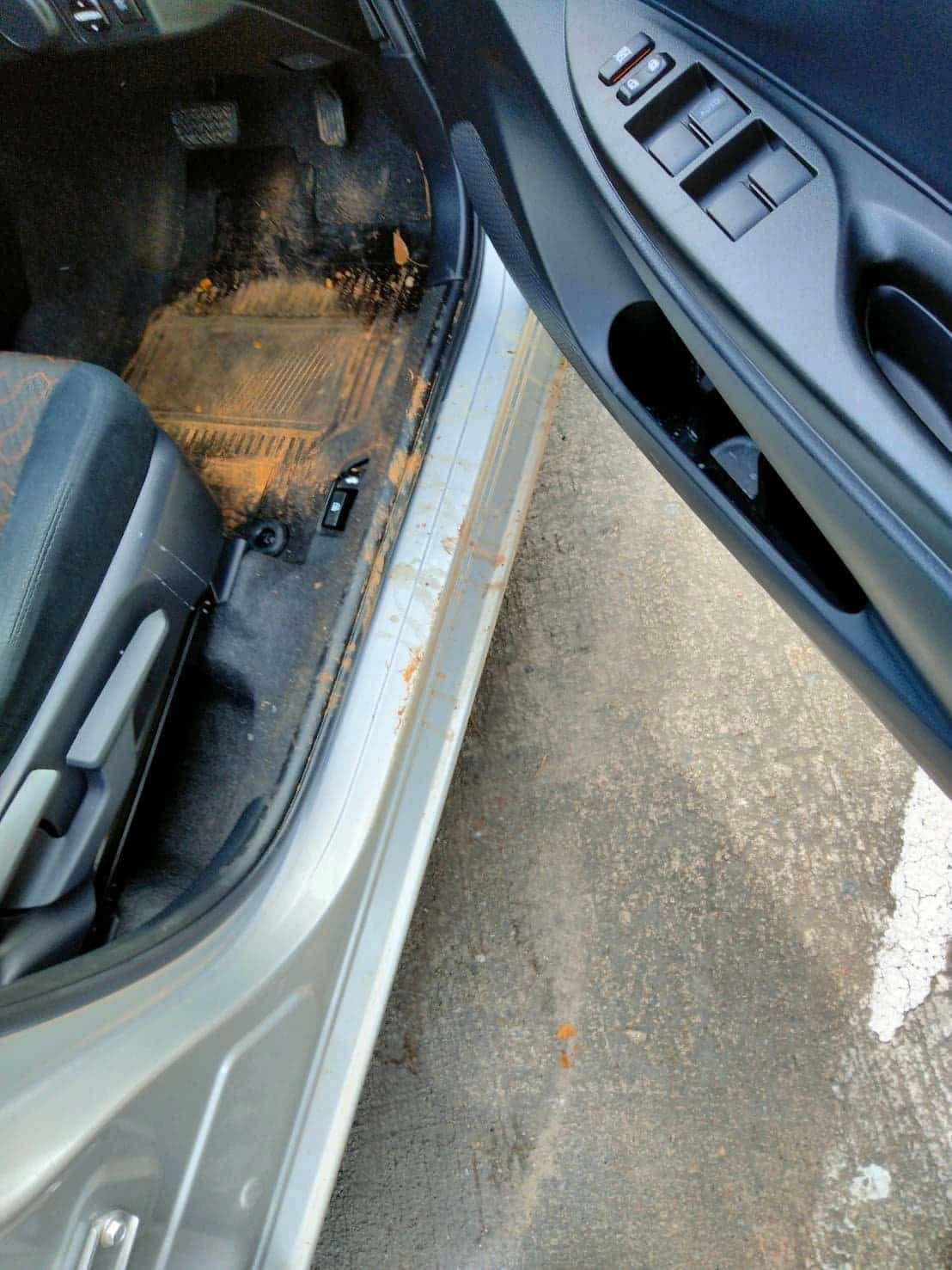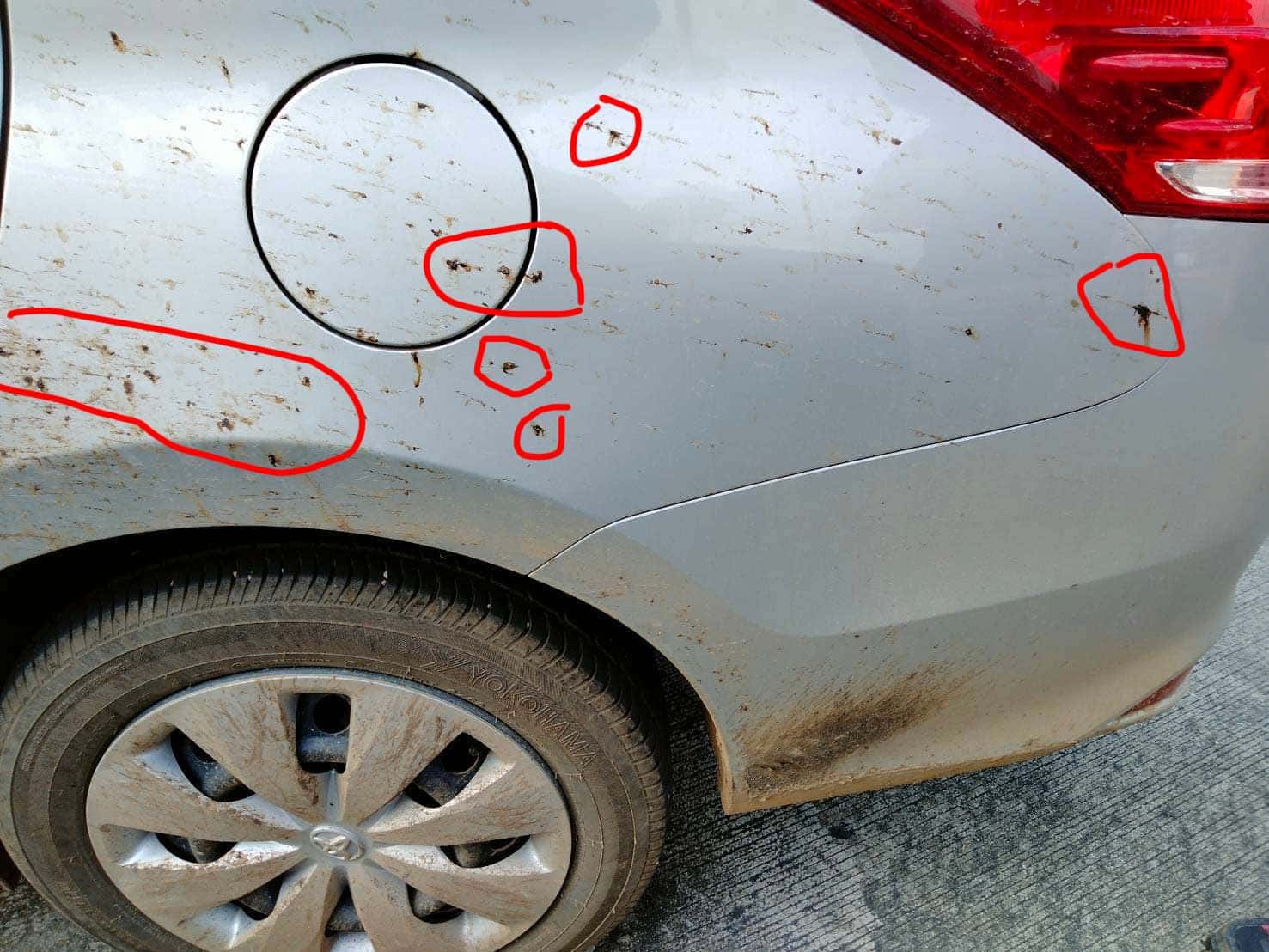 Customer wrote: “A car came from the side and throw some mud on one side of the car”.